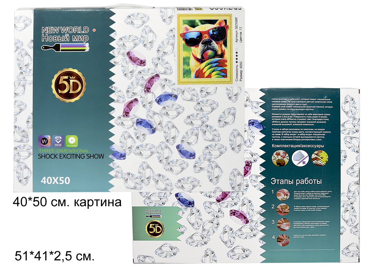 Алмазная мозаика арт. 089-5D Собака в очках в кор. полная выкладка