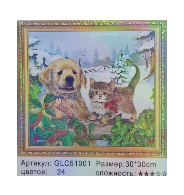 Алмазная мозаика арт. GLC51001 Пушистые друзья 30*30 полная выкладка на подрамнике