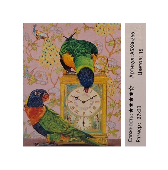 Алмазная мозаика арт. ASX86266 Любопытные попугаи 27*33 неполная выкладка на подрамнике