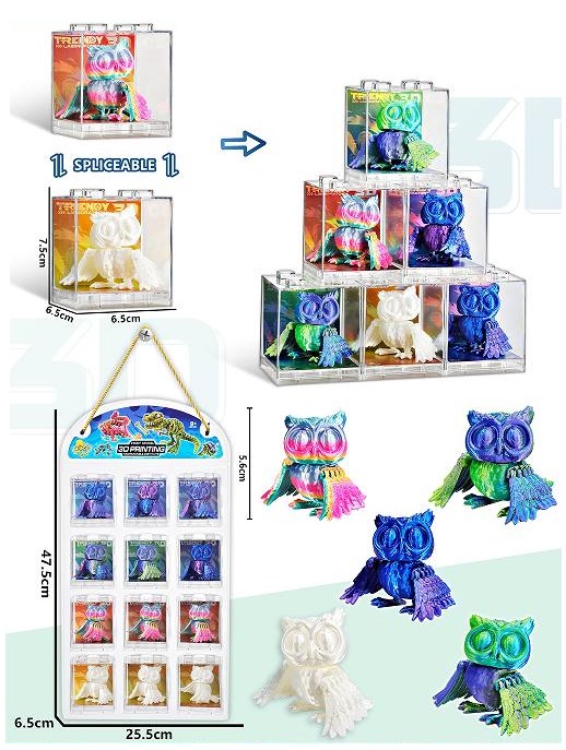Фигурка 3Д арт. XD-019 Сова подвижная цвета микс 1шт. в кор. (12 шт.) на листе)