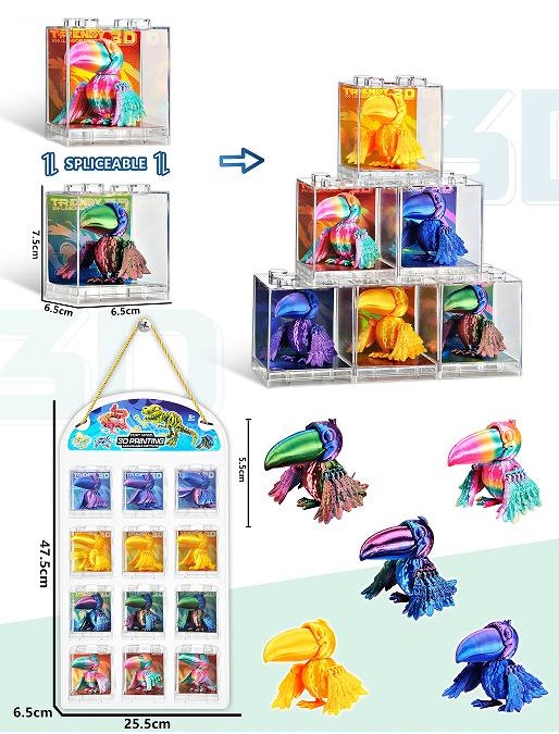 Фигурка 3Д арт. XD-018 Тукан подвижная цвета микс 1шт. в кор. (12 шт.) на листе)