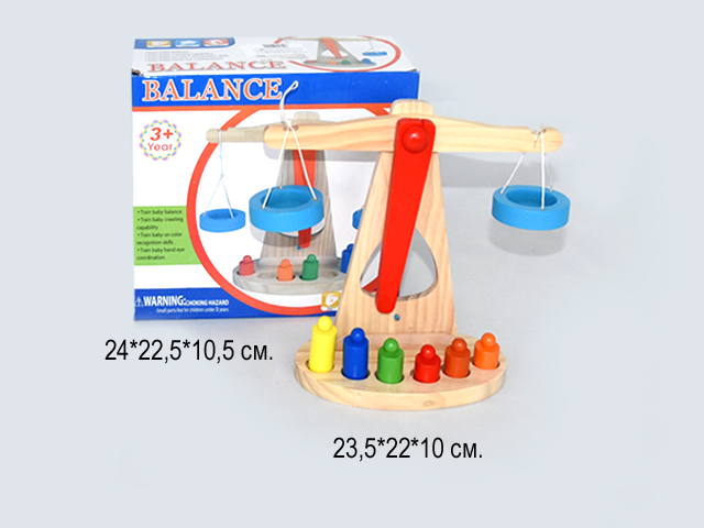 - Деревянная игрушка арт. 92-44 Весы в кор._/48шт./×Деревянная игрушка арт. 92-44 Весы в кор._/48шт./Развивающие детские весы научат ребенка находить баланс, используя гирьки разных размеров и цветов. Эта игра поможет в развитии мелкой моторики, изучении цвета и счета.