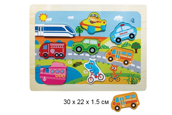 - Деревянная игрушка арт.1902-74 Транспорт в пленке.)×Деревянная игрушка арт.1902-74 Транспорт в пленке.)Вкладыши-фигурки "Транспорт" - очень интересная игра, способствующая развитию способности концентрировать внимание, мелкой моторики и сообразительности. Она сделана из натурального эко-материала, а поэтому полностью безопасна для детей.