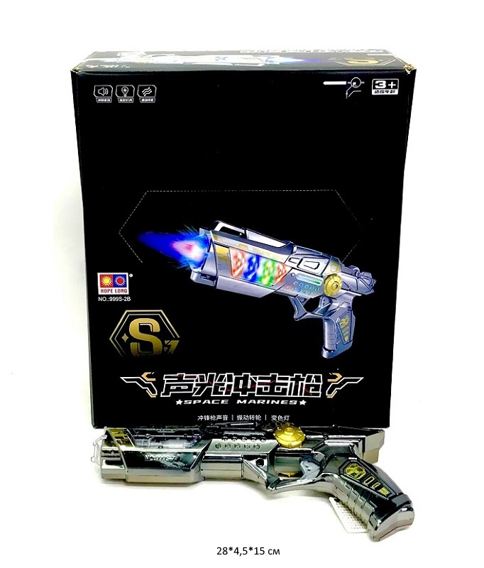 Оружие арт. 999S-2B Пистолет на батар. свет, звук (8 шт.) шоубокс_