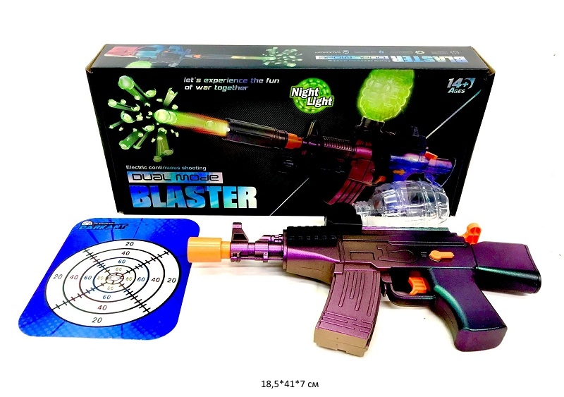 Каждый мальчик мечтает о таком оружии. Пистолет автомат со светящимися орбиз пулями перед игрой необходимо собрать. Режимы стрельбы контролируются курком, оружие стреляет шарами орбиз диаметром 7-8 мм. Удобно держать оружие как для прицельной стрельбы, так и для стрельбы от "бедра". Орбизы светятся в темноте, что добавит яркости игре, а так же поможет найти затерявшиеся пули. В комплекте есть мишень.
