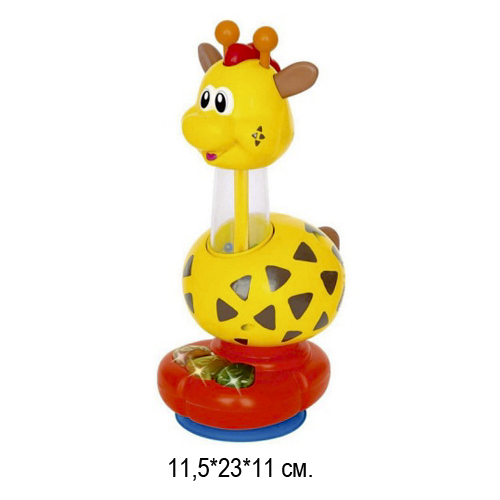 Каталка на батар. арт. 0604" Жираф в пак.Развивающая игрушка Kiddieland "Жираф" выполнена из яркого безопасного пластика в виде забавного жирафа на небольшой подставке. Шея жирафа изготовлена из прозрачного пластика. Внутри нее находятся цветные шарики. Головка игрушки крутится в обе стороны.На подставке расположены три кнопки-нотки. Нажимая на них, ребенок услышит веселые мелодии и звуки, издаваемые птичкой, лошадкой или овечкой. А если нажать на голову жирафа, то шарики внутри шеи начнут весело подпрыгивать. Также у жирафа есть хвост, который поворачивается в обе стороны со звуком трещотки. Игрушка развивает мелкую моторику рук, фантазию и воображение малыша.