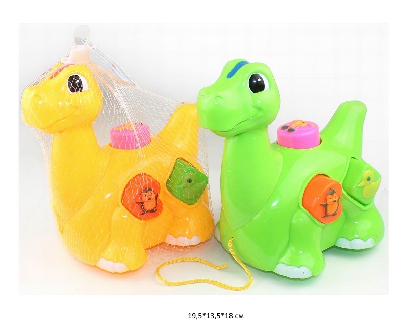 Каталка-сортер арт. 6203 Динозаврик Дрю на веревке в сетке 19,5*13,5*18Цвета в ассортименте