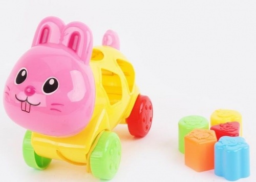 Каталка-сортер арт. 9202 Зайка на веревке /сетка/21,5*11,5*16Игрушка помогает развивать зрение, память, координацию, мелкую моторику и способность логически мыслить.