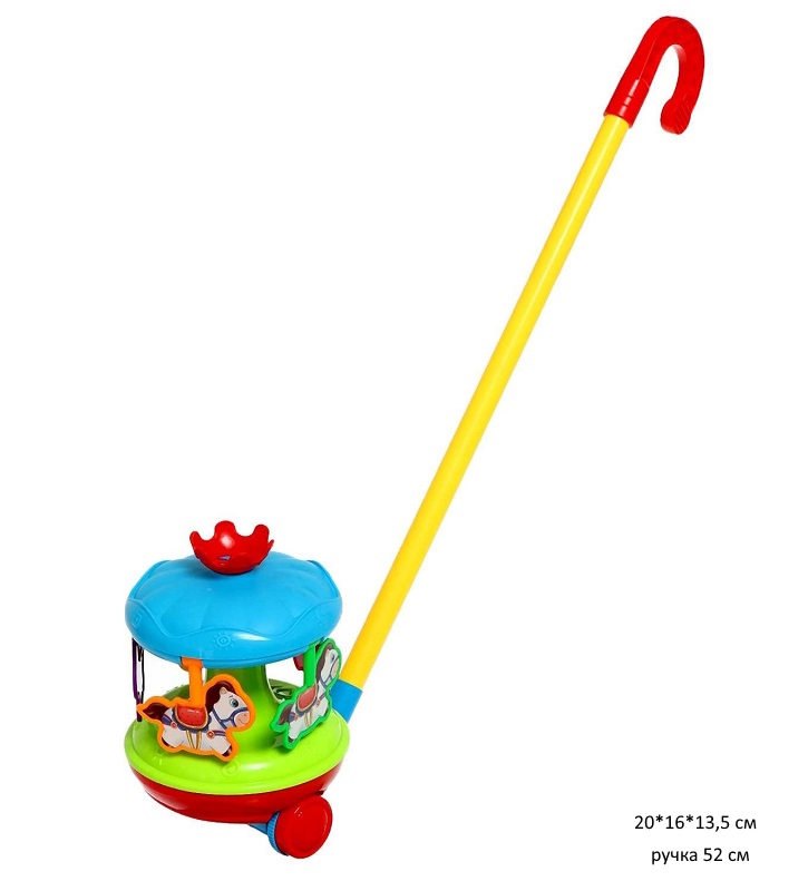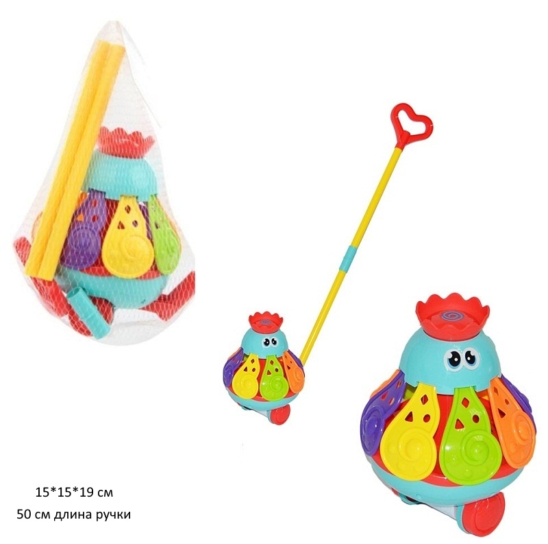 Каталка арт. 0501 Цветок с ручкой в сетке)Воспроизводит звук (дзинь). Детские каталки способствуют развитию у малышей координации движений, вестибулярного аппарата и внимания. Яркая каталка подойдёт для игры на свежем воздухе или дома.