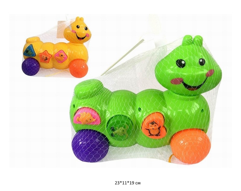 Каталка-сортер арт. 5803 Гусеница цвета микс на веревке в сетке 23*11*19Материал: пластик