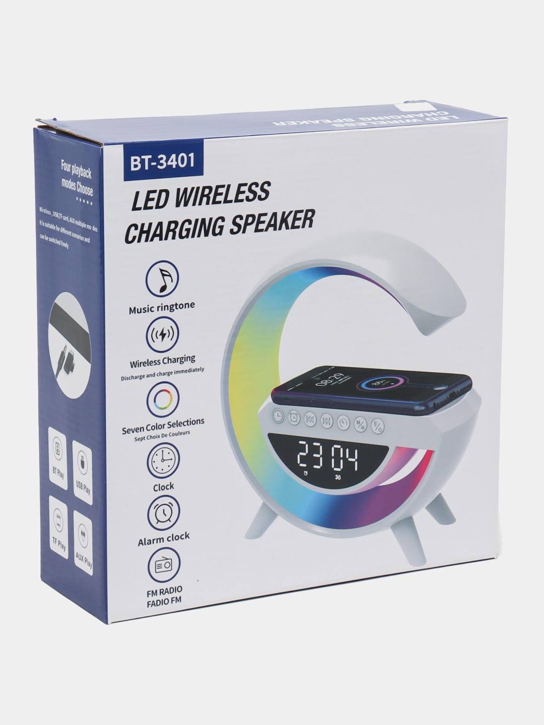 Светильник арт. BT-3401/15778-14 RGB G-Smart Белый с колонкой, часами, беспроводной зарядкой в кор._