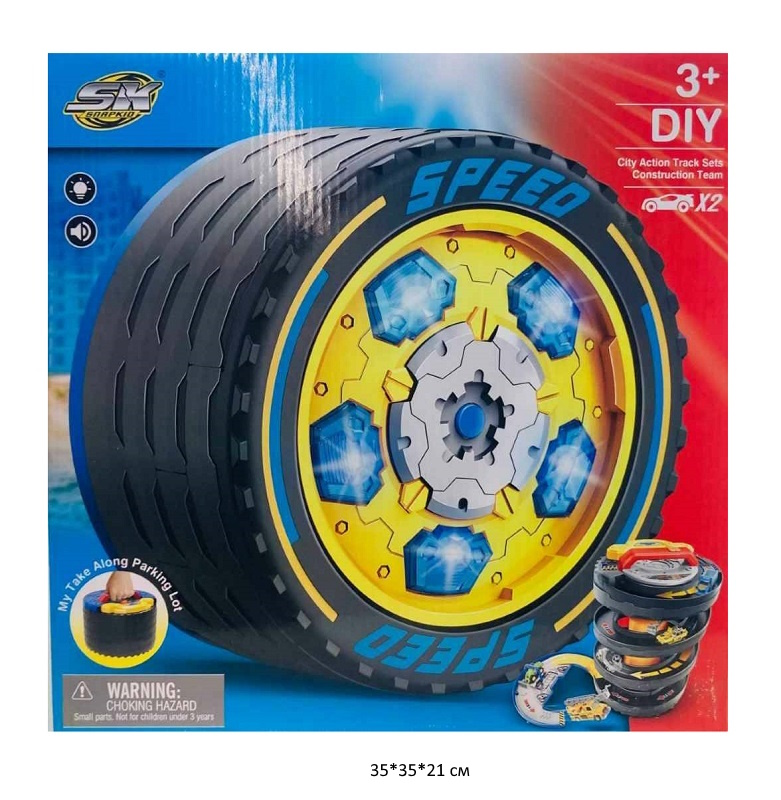 Парковка арт. SK-571GA "Колесо" трансформер свет, звук, спиральн. съезд в кор.~