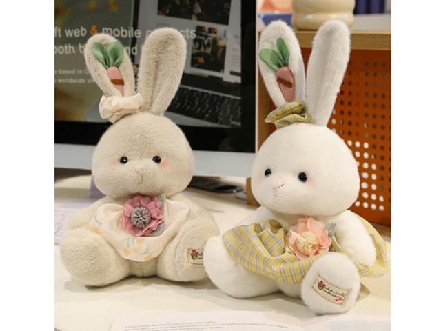 им Зайка арт. YE25911-1 С морковкой в ухе в платье цвета микс 25 см в пак.)