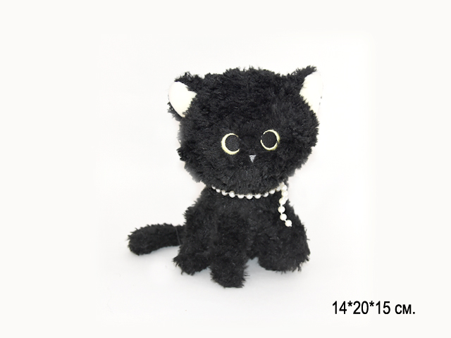 им Кошка арт. 16058-209 Черная кучерявая в бусах сидит 20*15 см в пак.