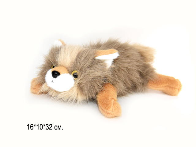 им Собака арт. 2508-30/209165 Длиношерстная бежевая лежит 32 см в пак.
