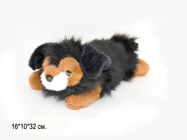 им Собака арт. 2508-30/209168 Длиношерстная черно-рыжая с белым лежит 32 см в пак.