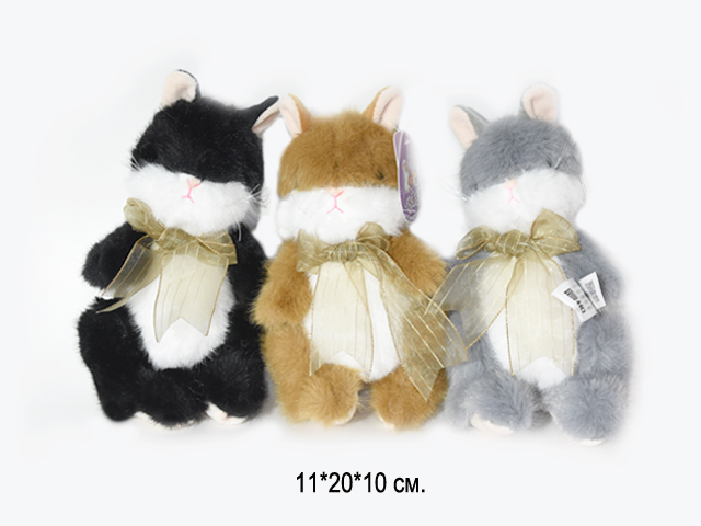 им Зайка арт. 209176 Короткоухий с золотым бантом на шее 20 см цвета микс в пак.