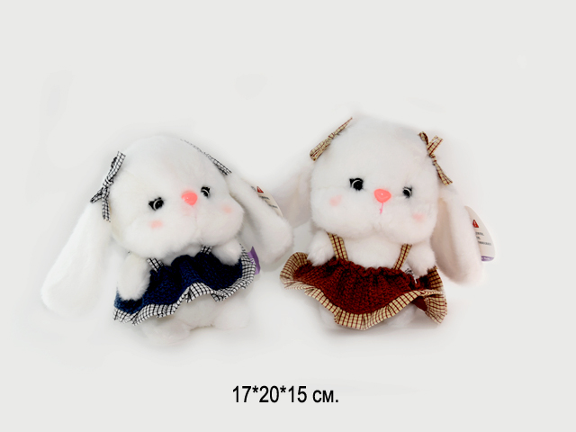 им Зайка арт. 209178 Белый в сарафане с клетчатым бантом на голове 20 см в пак.