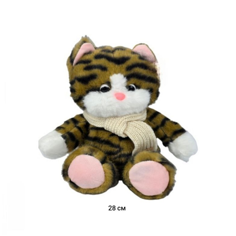 им Кошка арт. 0803-43-4 Рыже-коричневая толстая черная полоска в шарфе 28 см в пак._
