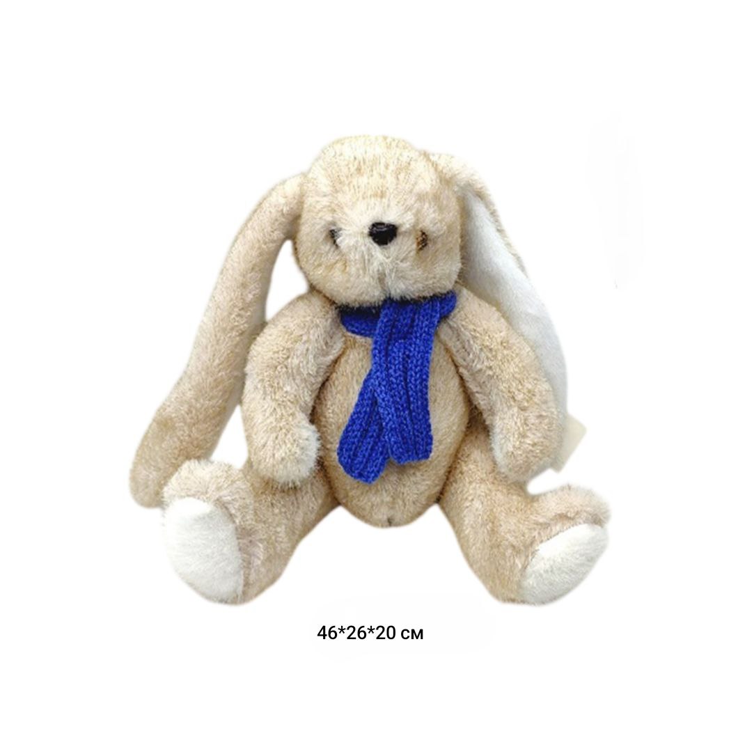 им Зайка арт. DYB-2026-12 Пестрый бежевый в вязанном шарфе 46 см в пак._