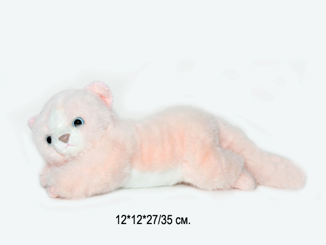 им Кошка арт. 209973/BO-2-30-2 Розовая с белым лежит 30 см в пак._