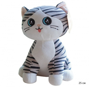 Размер: 25 см450 руб. - им Кошка арт. 907-2 Полосатая сидит 30 см в пак.)×им Кошка арт. 907-2 Полосатая сидит 30 см в пак.)Забавная кошечка выглядит мило и станет надежным другом для ребенка. Игрушка очень приятная на ощупь благодаря мягкому искусственному меху, из которого сшита. Её легко стирать и сушить.