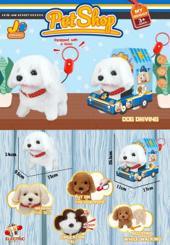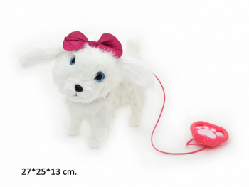 У питомца мягкая и красивая шерстка. Щенок ходит, гавкает, виляет хвостиком и поворачивает голову. Игрушка включается при нажатии на кнопку на поводке.