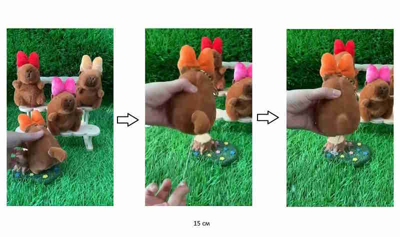 им Капибара арт. 25311-2 С бантом на голове цвета микс, машет хвостом брелок 15 см в пак.)