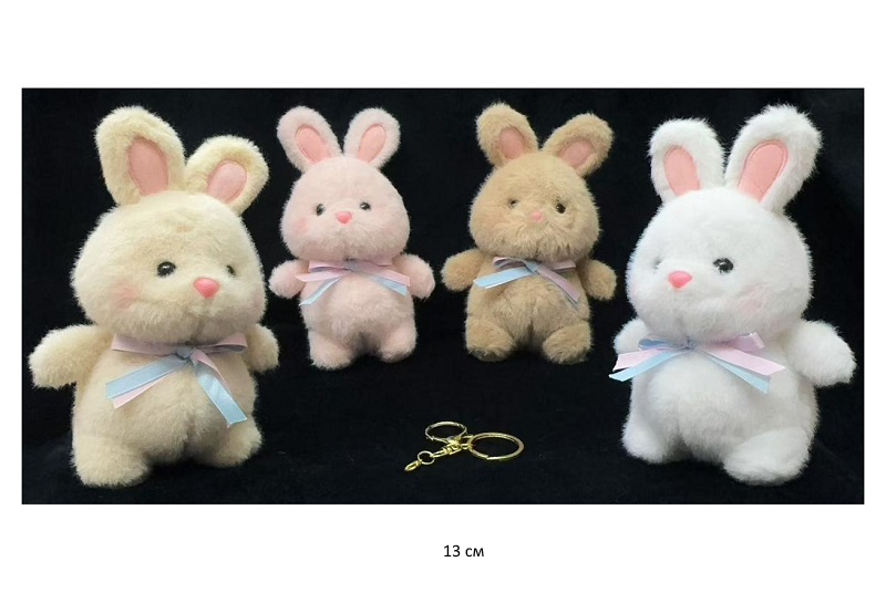 им Зайка арт. YE25901-3 Цвета микс розовые щечки с ленточкой брелок в пак.)