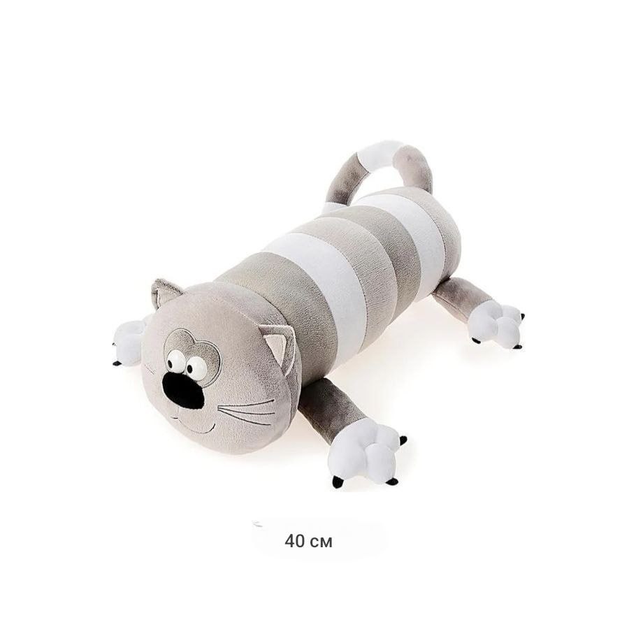 им Обнимашка арт. 13668-3-209 Кошка полосатая в серых тонах с выпуклыми глазами 40 см в пак.