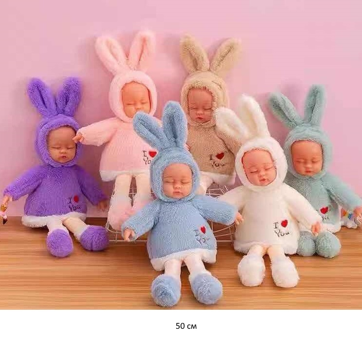 Мягкая игрушка - кукла в костюме зайчика. Она не оставит равнодушной ни одну девочку. Ее можно укладывать спать, петь песенки, качать на руках, и придумать еще много сюжетно-ролевых игр. Кукла и сама умеет петь песню на английском языке. Милая игрушка принесет радость и позитивные эмоции.