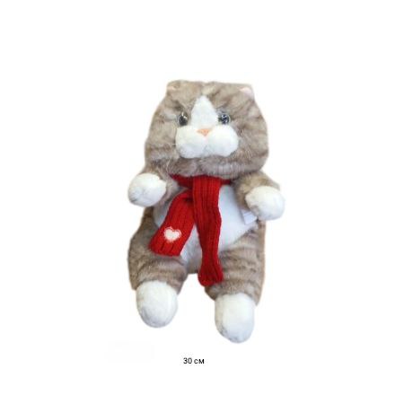им Кошка арт. YE25219-2-6 Полосатая белый лапки в вязаном шарфе мяукает 30 см в пак.)
