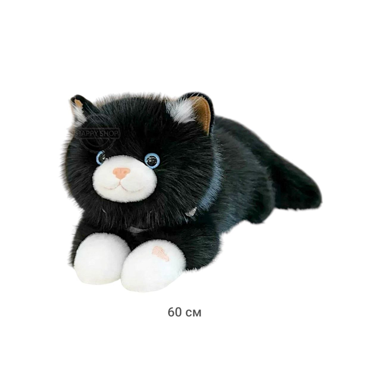 им Кошка арт. 209405 Черная белые лапки и мордочка лежит мяукает 60 см в пак.