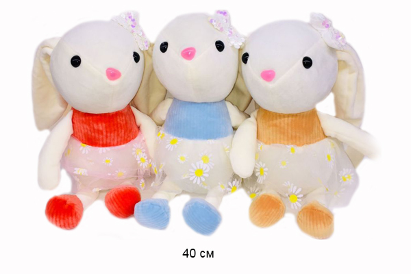 им Зайка арт. 80722-3 Белый в платье цвета микс 40 см в пак.)