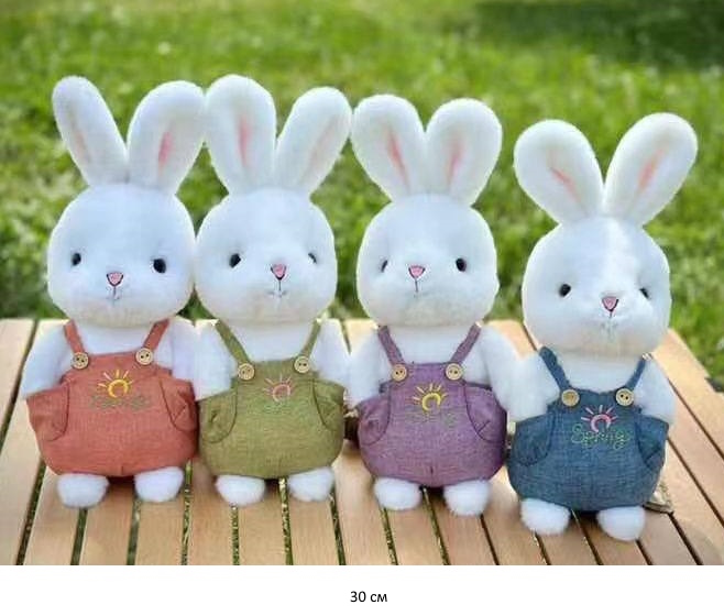 им Зайка арт. 24225-16/25109-7 Белый в комбинезоне с карманами цвета микс 30 см в пак.)