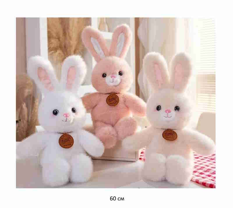 им Зайка арт. YE24122-2/25219-7/251025-2-6 Пушистый цвета микс с медальоном 60 см в пак.)