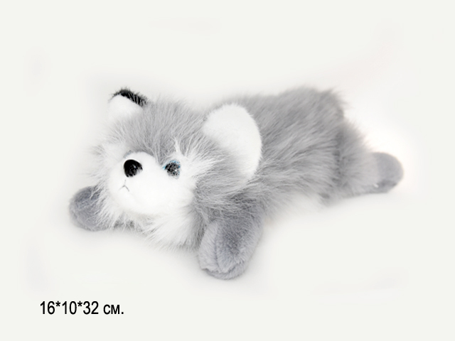 им Собака арт. 2508-30/209167 Длиношерстная серая с белым лежит 32 см в пак.