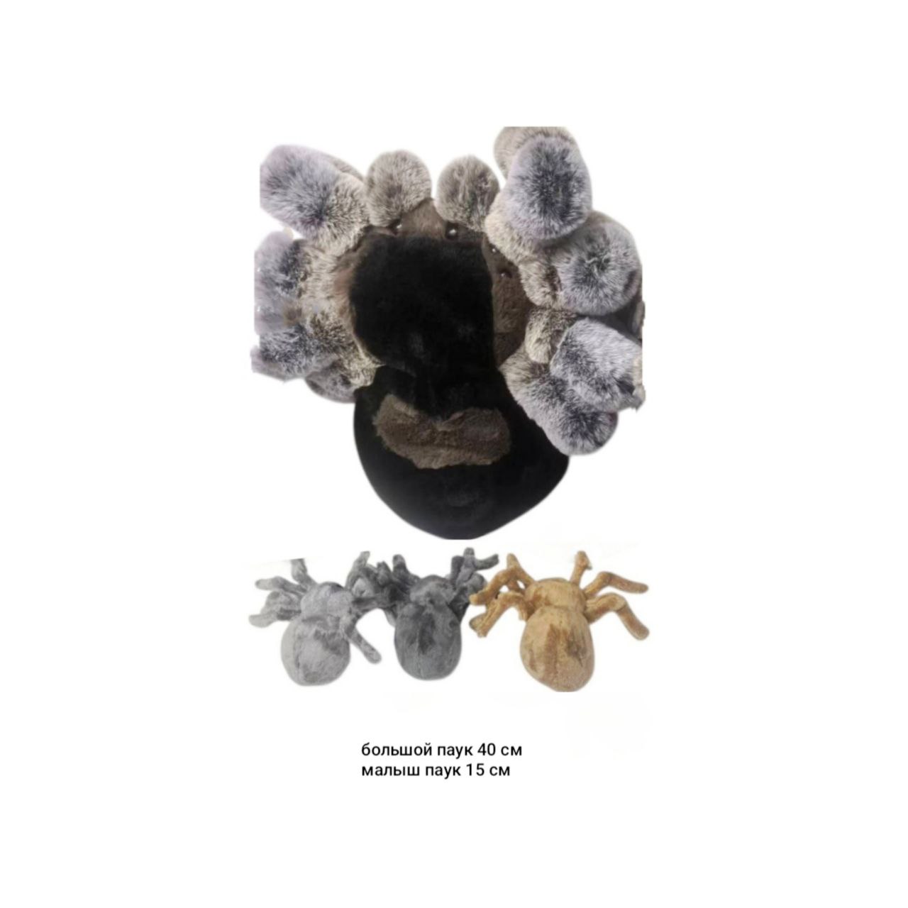 им Паук арт. 209979 Черно-серый 40 см с 3 малышами 15 см в пак.
