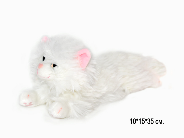 им Кошка арт. 12296-209 Белая лохматая розовые уши лежит 35 см в пак.