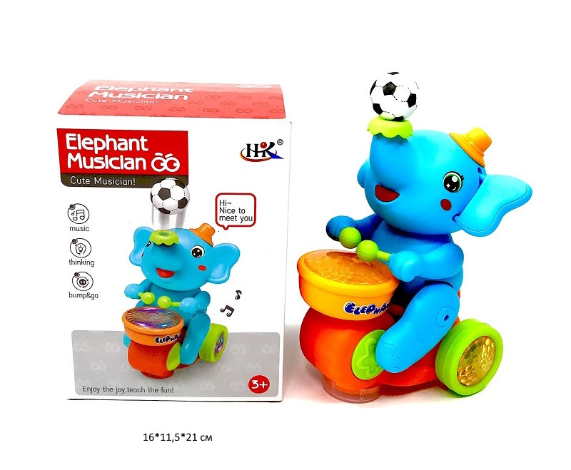 Слон арт. 664B На велосипеде на батар. свет, музыка, цвета микс в кор._=