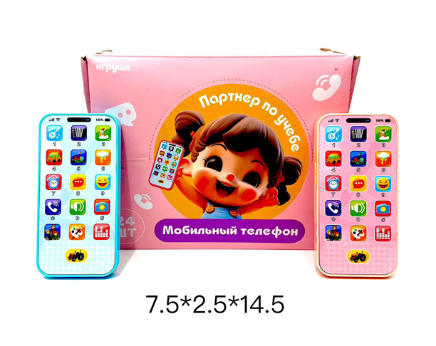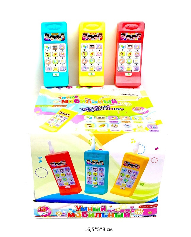 Телефон арт. 206B-12 Цвета микс муз. на батар. (12 шт.) шоубокс_Каждая кнопка преподнесет сюрприз и поднимет настроение. Благодаря своим габаритам, игрушка удобно ложится в детскую ручку.