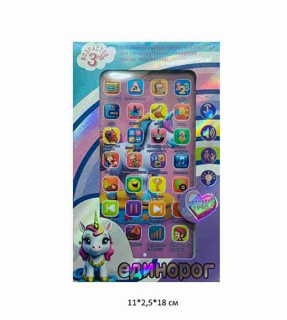 Телефон арт. XS180-3 Единорог интерактив. обучающий с USB в кор.~