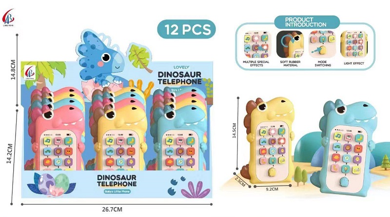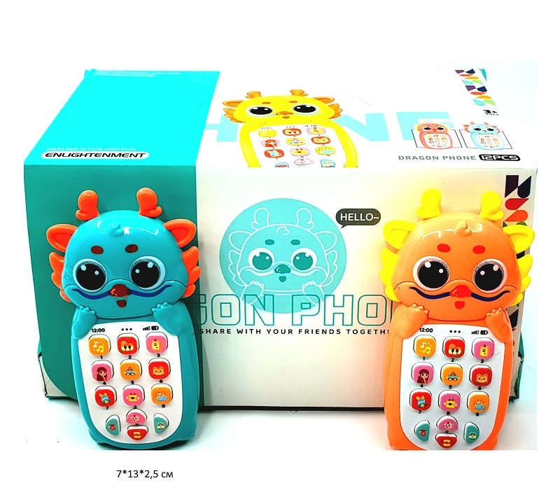 Телефон арт. LB-804 "Динозавр" цвета микс муз. на батар. (12 шт.) шоубокс)