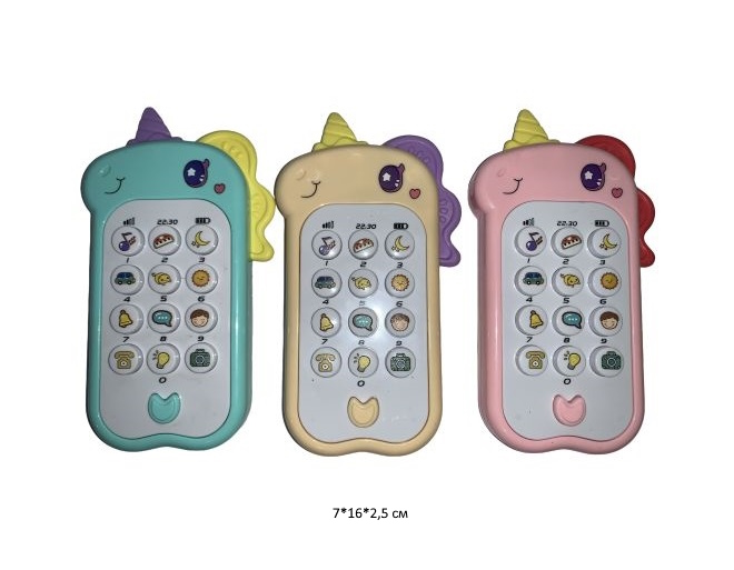Телефон арт. 188-7B2/LB-801 "Единорог" цвета микс муз. на батар. (12 шт.) шоубокс_+)Каждая кнопка преподнесет сюрприз и поднимет настроение. Благодаря своим габаритам, игрушка удобно ложится в детскую ручку.