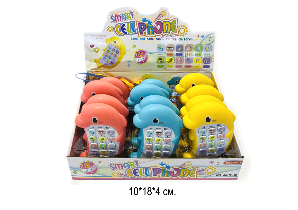 Телефон арт. 6611E-12 "Дельфин" цвета микс муз. на батар. (12 шт.) шоубокс•