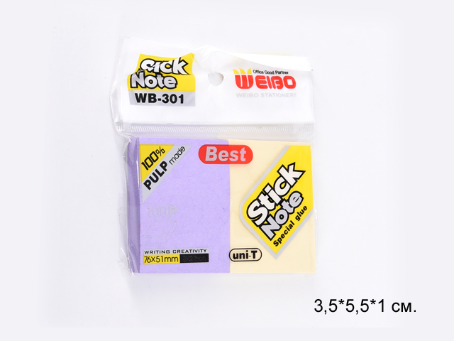 кц_Блок самоклеящийся (стикеры) арт. WB-301 Цвета микс76*51 мм,100 л. в пак.