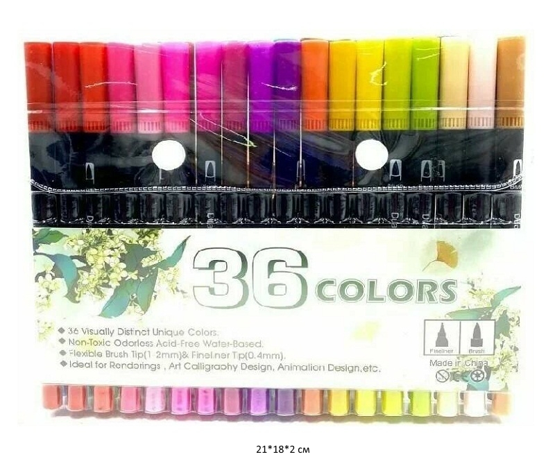 кц_Фломастеры акварельные арт. YL221813-36 Набор 36 цветов двусторонние в пласт.кор.