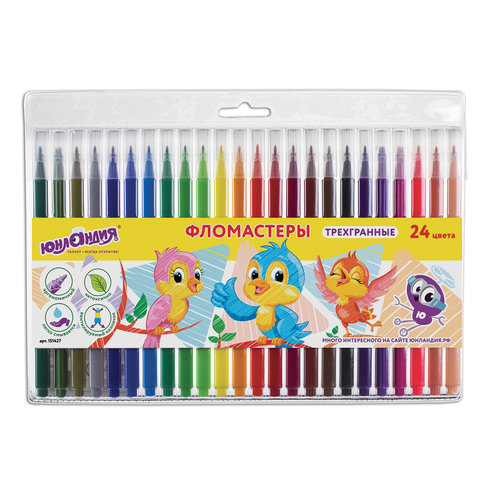кс_Фломастеры арт.151427 ЮНЛАНДИЯ 24 цв., "ЗООПАРК", трехгранные,смываемые,вентилируем.колпачокКоличество цветов: 24