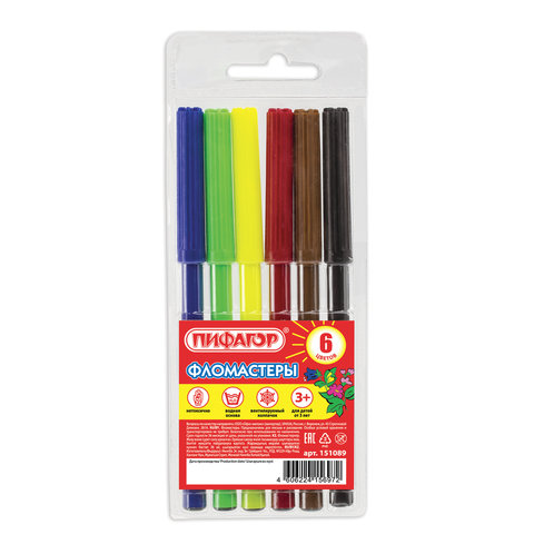 кс_Фломастеры арт.151089 ПИФАГОР, 6 цветов, вентилируемый колпачокКоличество цветов: 6