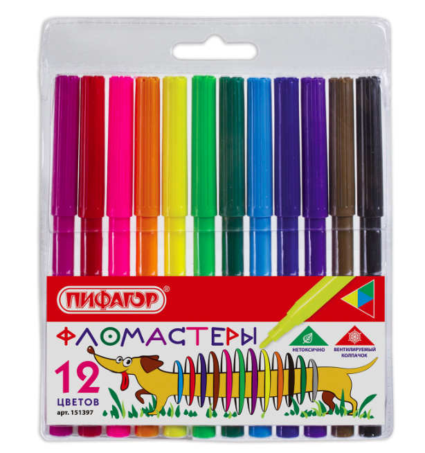 кс_Фломастеры арт. 151090 ПИФАГОР 12 цветов, вентилируемый колпачокКоличество цветов: 12